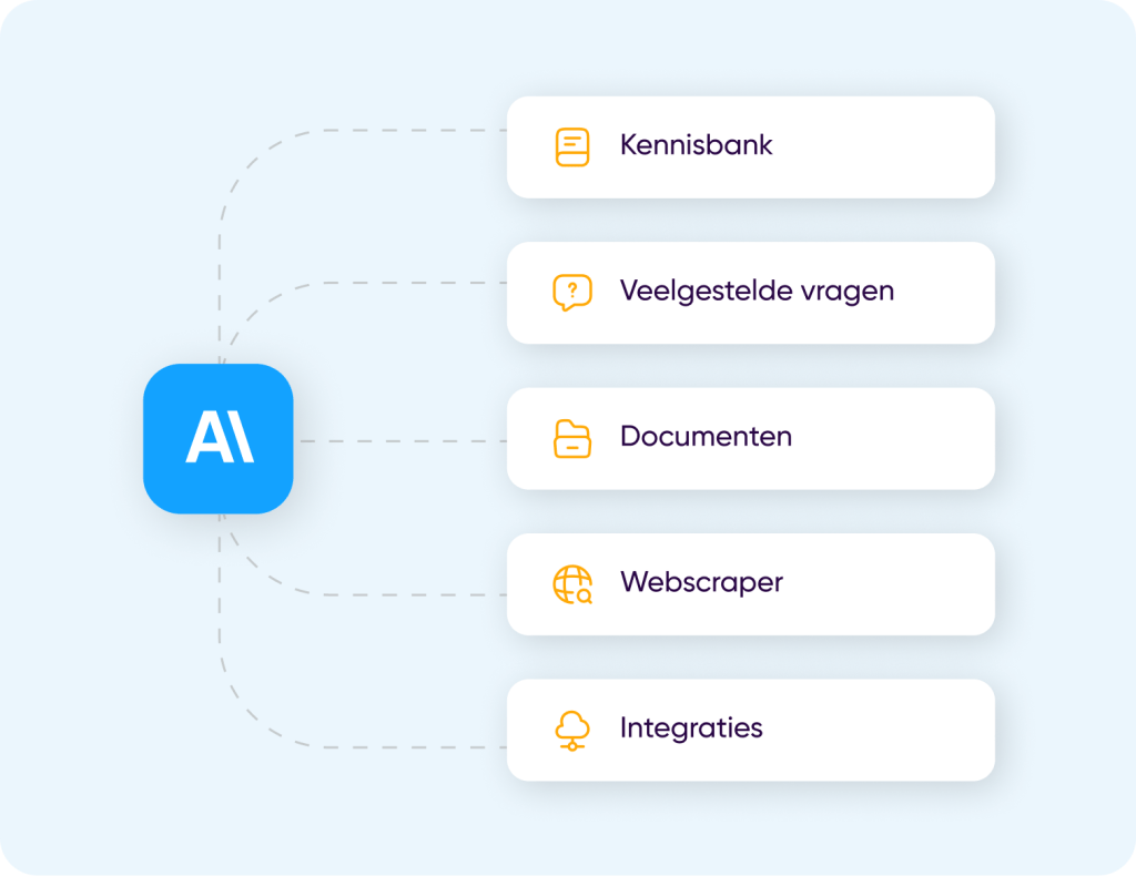 AIDAN gebruikt je bestaande kennis, zoals retourbeleid, verzendinformatie en interne richtlijnen. Je hoeft niets opnieuw op te bouwen.