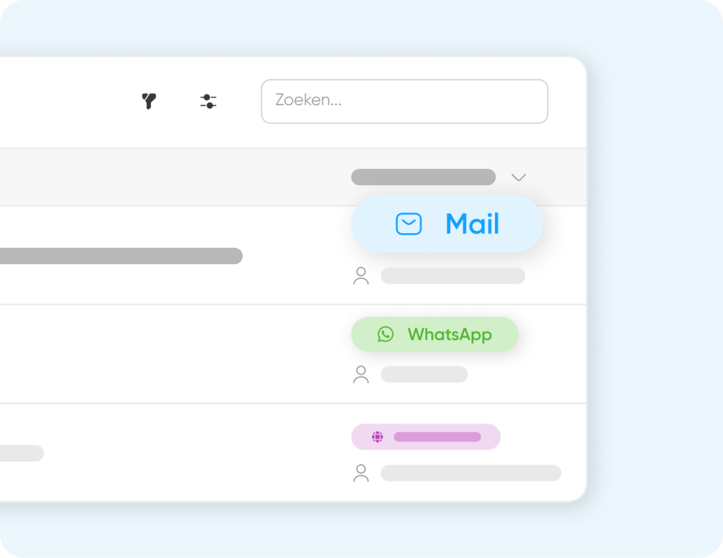 Mail, WhatsApp of formulier. Waar de vraag ook op binnenkomt, alles centraal in één systeem.